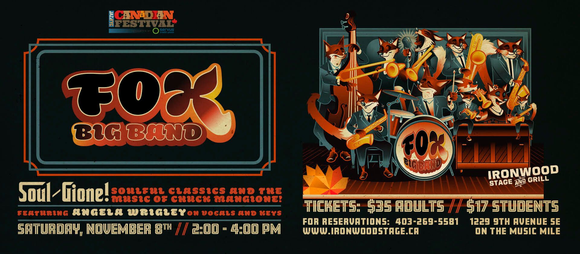 Hey there, 😎 join us at the JazzYYC Canadian Jazz Festival for Fox Big Band’s tribute to Chuck Mangione 🎺 plus a dose of some cool soul-jazz 🎶played with fire 🔥and feeling that swings, grooves, and moves you! Reservations call the Ironwood 403-269-5581 or [email protected] 🎼